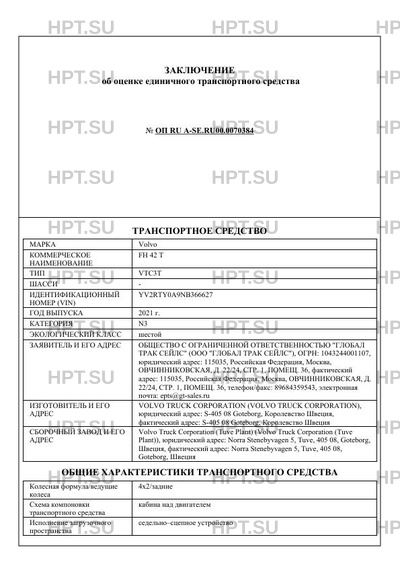 | Предприятие-изготовитель | VOLVO TRUCK CORPORATION |