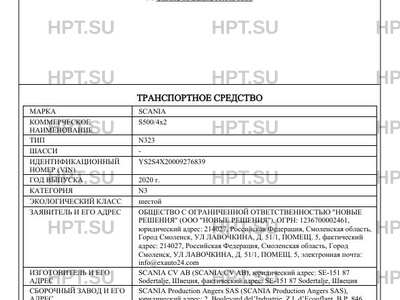 | Марка ТС | SCANIA |