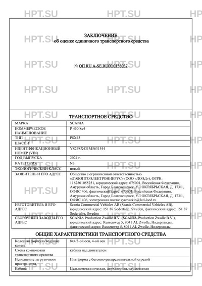 | Категория ТС | N3 |