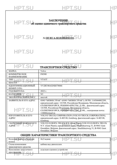 | Предприятие-изготовитель | VOLVO TRUCK CORPORATION |