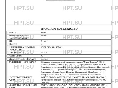 | Предприятие-изготовитель | VOLVO TRUCK CORPORATION |