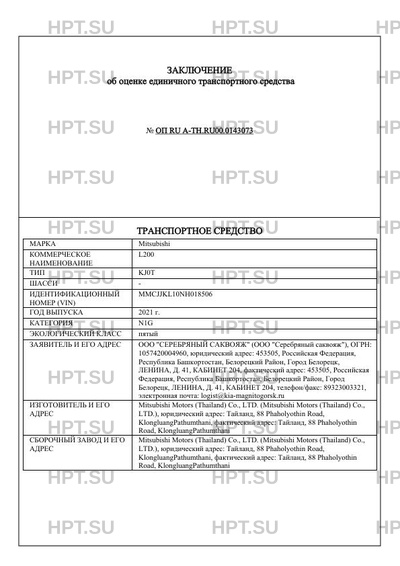 | Предприятие-изготовитель | Mitsubishi Motors (Thailand) Co., LTD. |