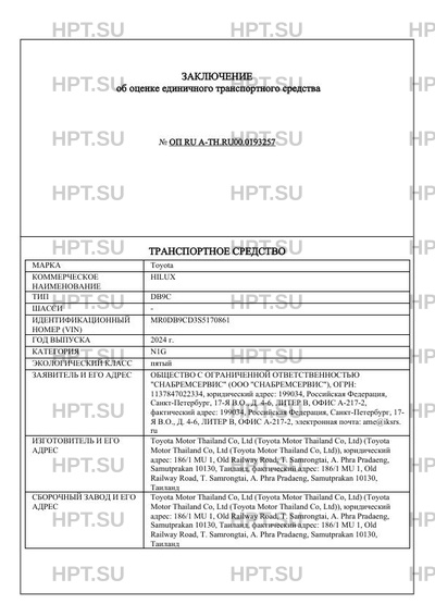 | Предприятие-изготовитель | Toyota Motor Thailand Co, Ltd (Toyota Motor Thailand Co, Ltd) (Toyota Motor Thailand Co, Ltd (Toyota Motor Thailand Co, Ltd)), юридический адрес: 186/1 MU 1, Old Railway Road, T. Samrongtai, A. Phra Pradaeng, Samutprakan 10130, Таиланд, фактический адрес: 186/1 MU 1, Old Railway Road, T. Samrongtai, A. Phra Pradaeng, Samutprakan 10130, Таиланд |
