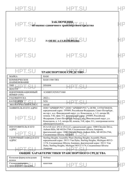 | Коммерческое наименование | RAM 1500 TRX |