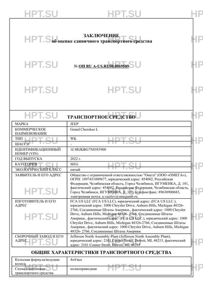 | Коммерческое наименование | Grand Cherokee L |