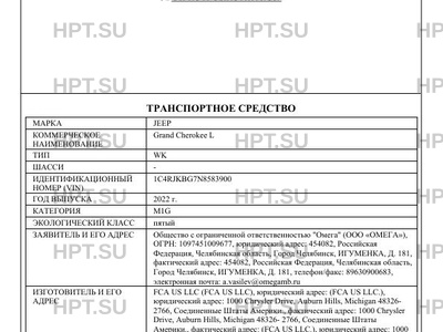 | Марка ТС | JEEP |