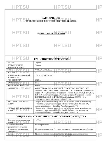 | Коммерческое наименование | Tundra |