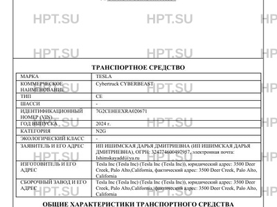 | Коммерческое наименование | Cybertruck CYBERBEAST |