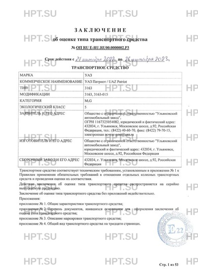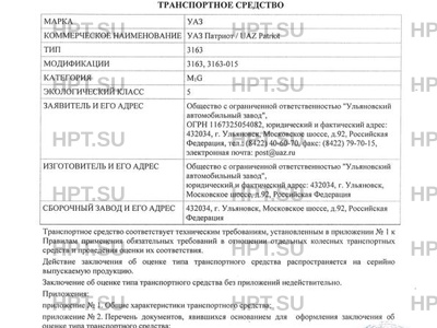 | Коммерческое наименование | УАЗ ПАТРИОТ uaz patriot |