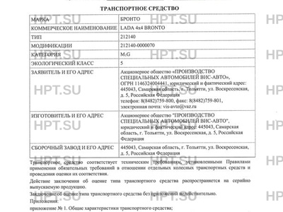 | Коммерческое наименование | LADA 4X4 BRONTO |