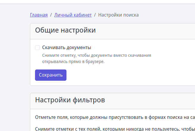 Но если Вам не нужно каждый раз сохранять документ, а требуется его сначала просмотреть в браузере - вы можете изменить это поведение в Настройках поиска в Личном кабинете.