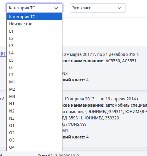 Анализ информации о категории/экологии ТС проходит в автоматическом режиме. Не для всех документов возможно её определить. На этот случай в списках есть соответствующий вариант.